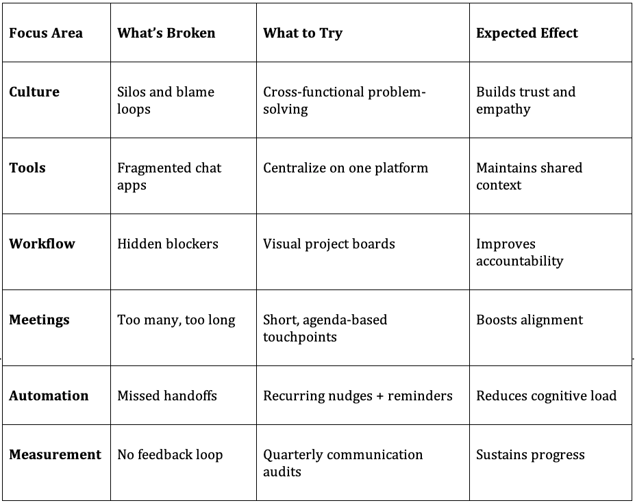 Better interdepartmental communication doesn’t mean more meetings or more apps. It means less noise, fewer assumptions, and more trust.